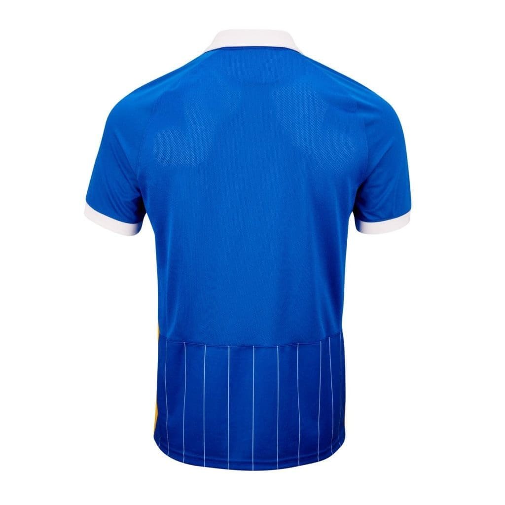 The stripes however does not go across the American Express inscription on the front view of the Brighton home kit for the next campaign. The collar also looks to be buttoned, with the sleeve cuffs all coming in white while the Swoosh is golden, taking its inspiration from the 1983/84 uniform – which also possessed white pinstripes on a blue base.
