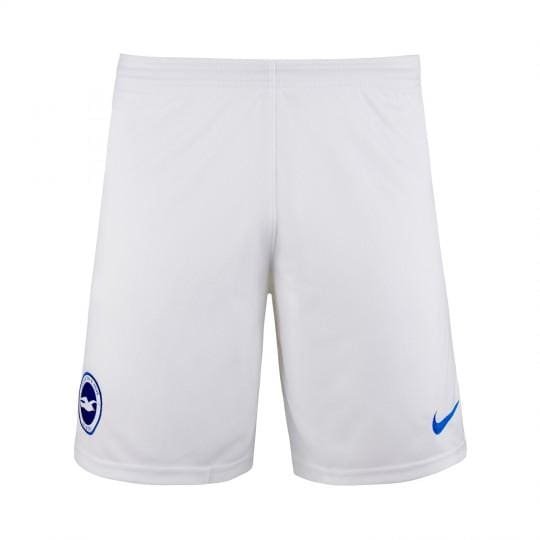 The shirt is completed with white shorts as well as blue socks to match.