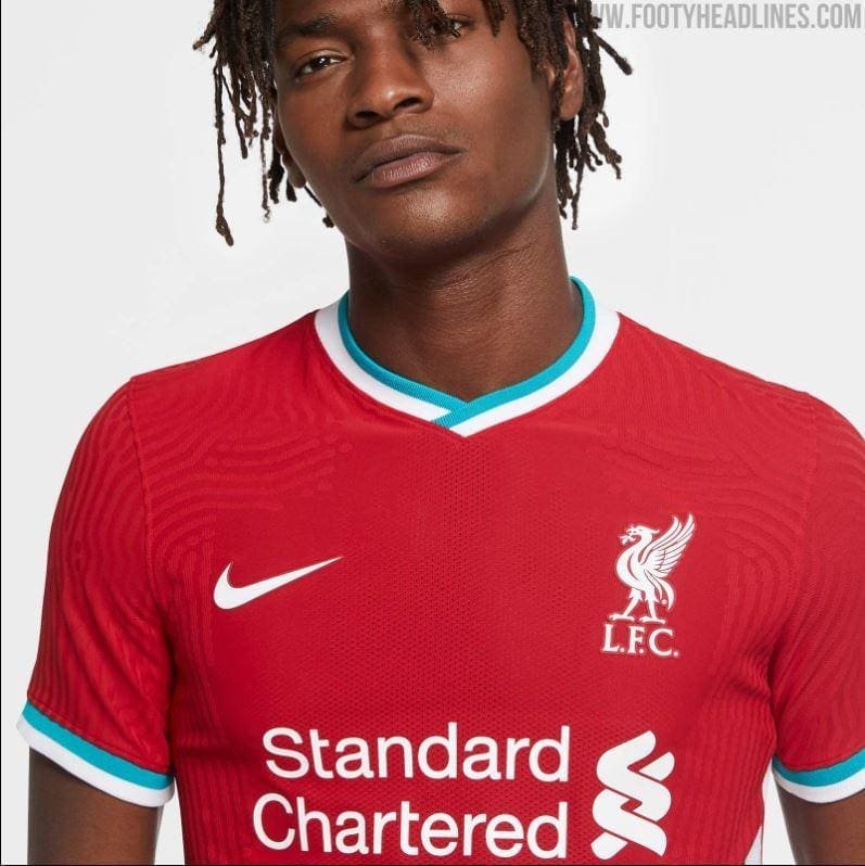 The new Liverpool home shirt by Nike for next season is based on the latest Nike template with an overlapping v-collar.