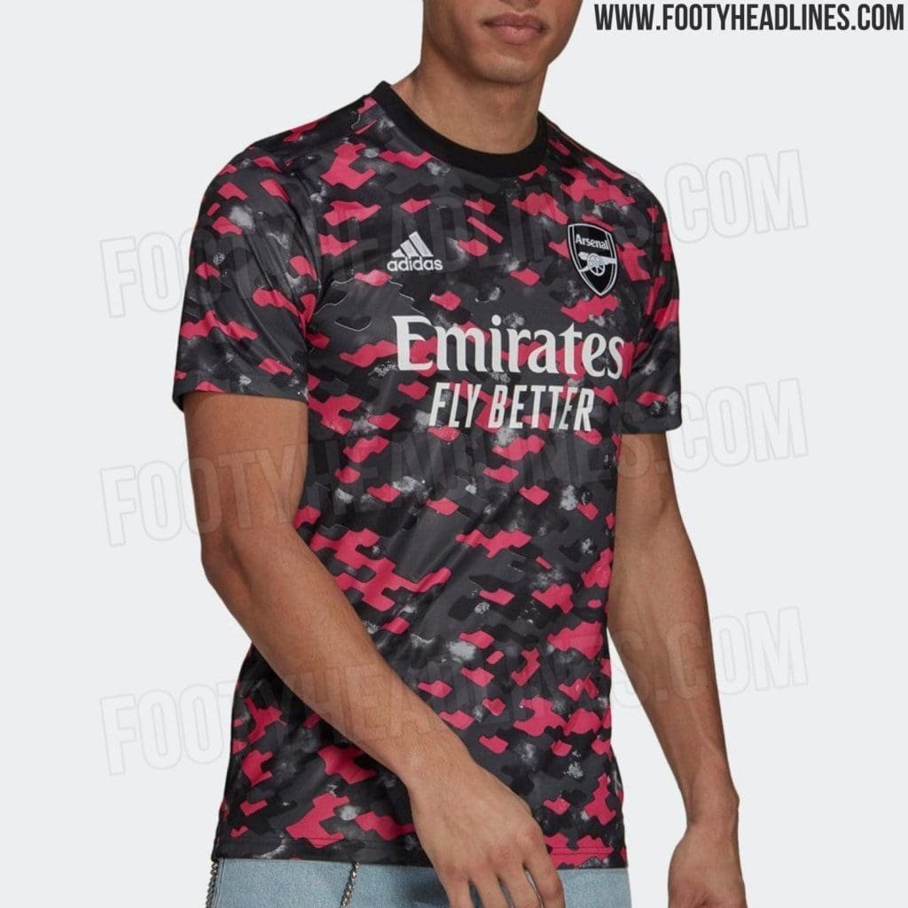 Several pictures have emerged of the unreleased Arsenal pre-match shirt of the 2021/22 season. These pictures have been leaked by the ever-reliable Footy Headlines.