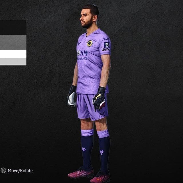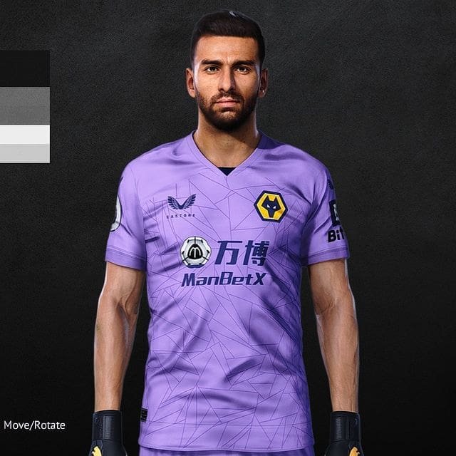 Lastly, let’s look at what Jose Sa will be donning between the posts when it comes to next season. Wolverhampton Wanderers F.C. goalkeeper kit is a purple patched jersey with a set of geometrical patterns with a black outlining.
