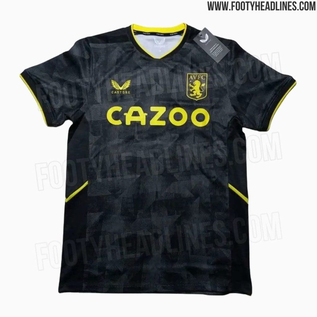 Aston Villa third kit for the upcoming season looks much more modern in comparison with their home and away jerseys. Castore decided to go with black as a choice of color for the 2022-23 Aston Villa third kit. This kit unlike the other two has a design pattern on the abdomen area. It has a tonal-like pattern of black and charcoal color which seems a nice patterned combination for the kit. Best thing about this kit is the symmetry around the collar and sleeves along with yellow-coloured club badge. Same yellow color is carried by Castore and Cazoo’s logo on the front of the kit. A stripe on the side of the abs and a solid black below the armpits beautifully separate the sides of the kit.
