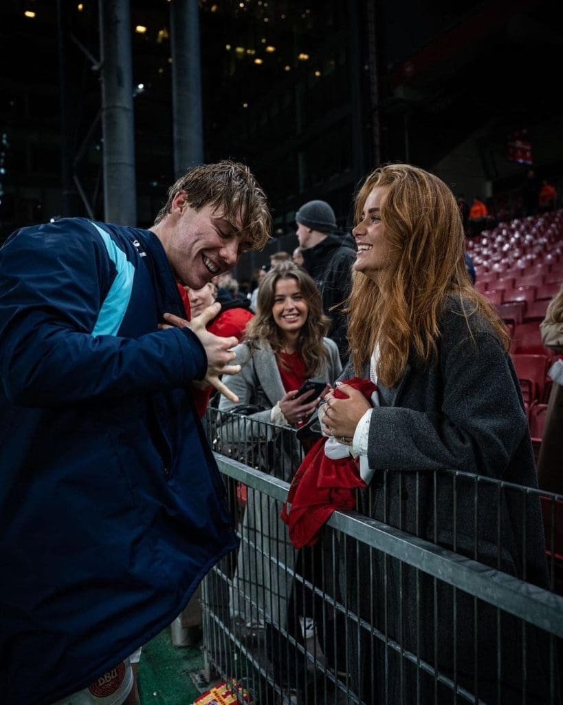 The commencement of Rasmus Hojlund and Laura Rhod Sondergaard’s relationship remains undisclosed. However, the couple went public about their romance by sharing a photo together in March last year. Adding to the public revelation, Laura was present in the stands during a memorable moment when Hojlund scored a hat-trick against Finland in the European Qualifiers, culminating in a shared kiss between the two.