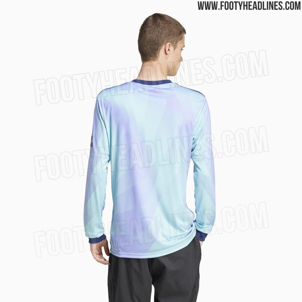 The design of the Adidas Arsenal FC 2024-25 third football shirt is a blend of modern and classic elements. The jersey boasts a contemporary gradient pattern which are quite reminiscent of the Northern Lights, creating a dynamic and eye-catching look that contrasts with the classic Trefoil logo.