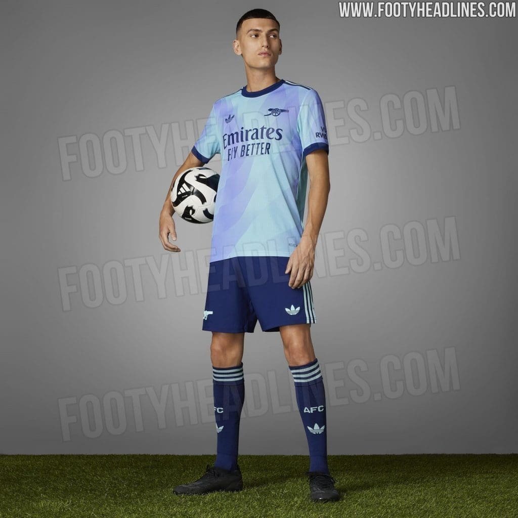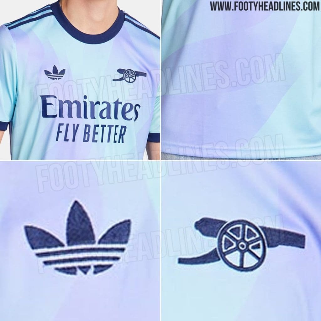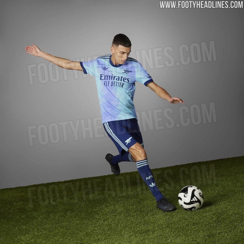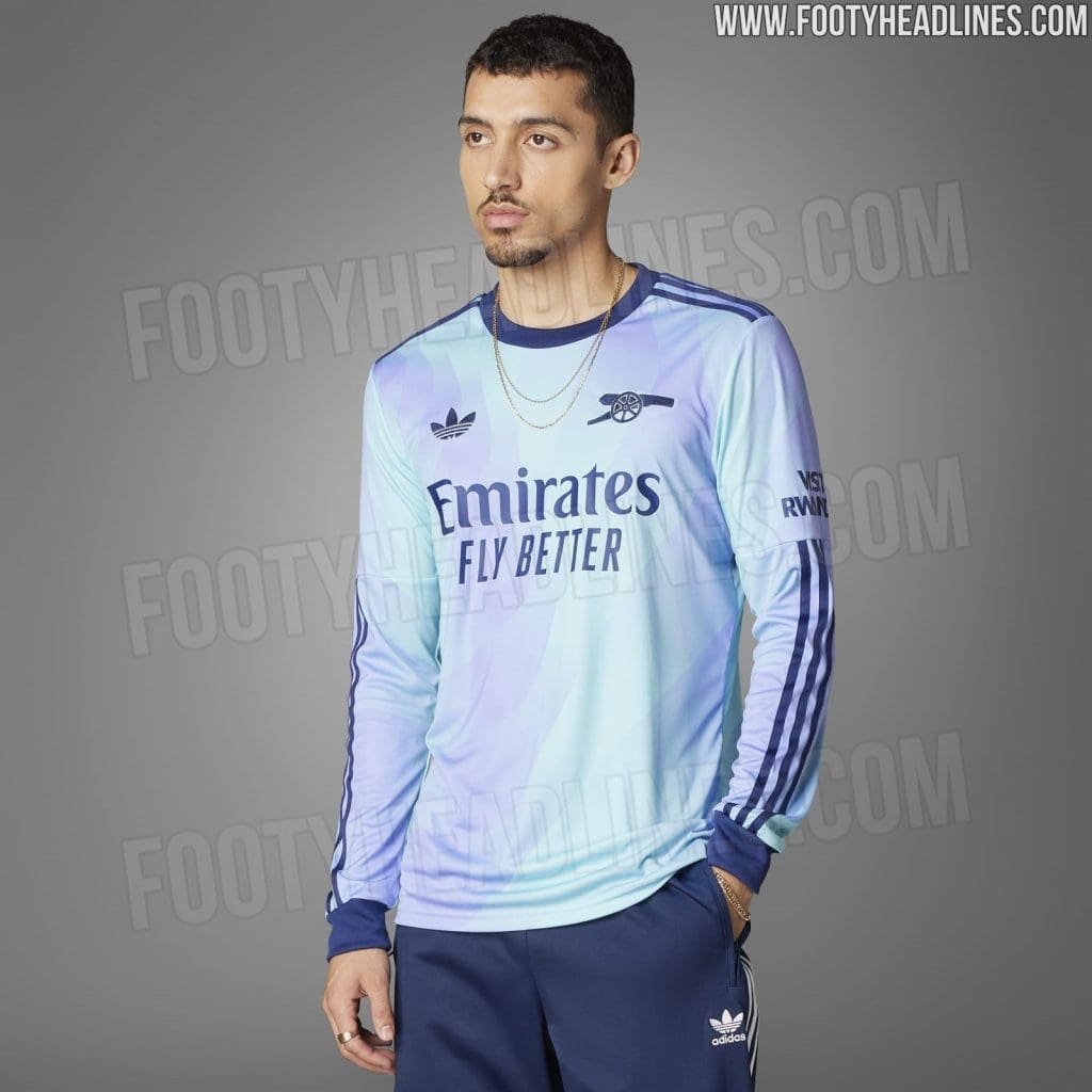 Adidas Arsenal 24-25 third kit is set to be launched on 14th August 2024, as a part of the whole Adidas Trefoil third set. However, the ever-reliable Footy Headlines have come in with an early leak of the official pictures from Arsenal Adidas’ third kit 24-25 launch.